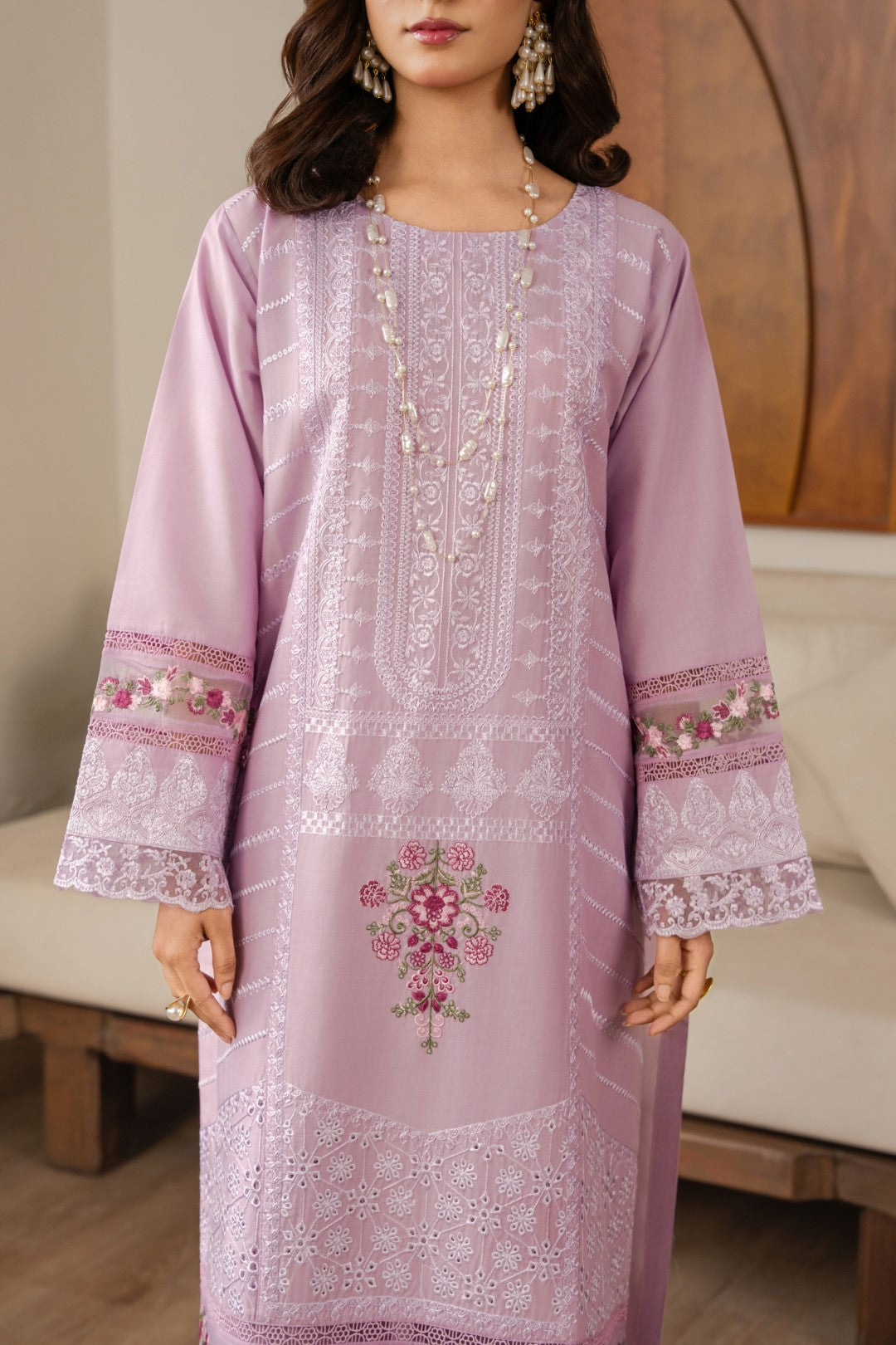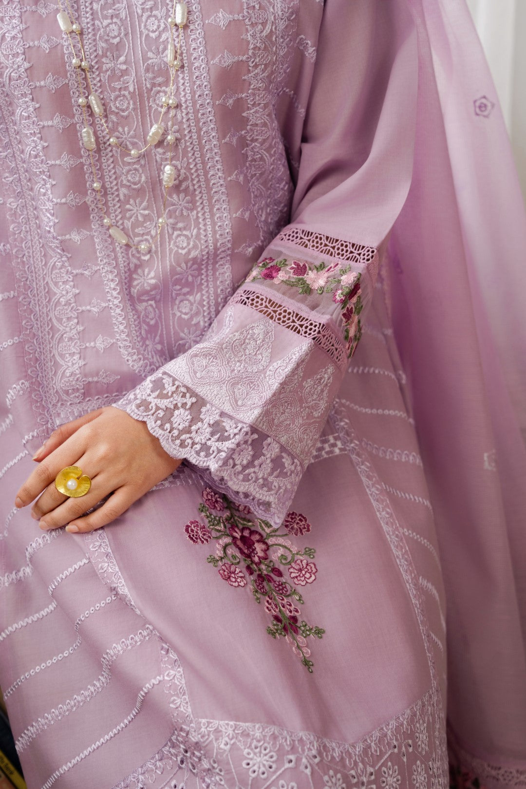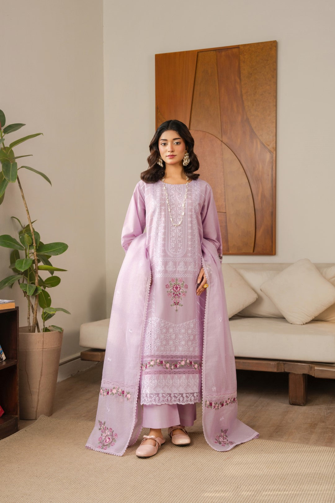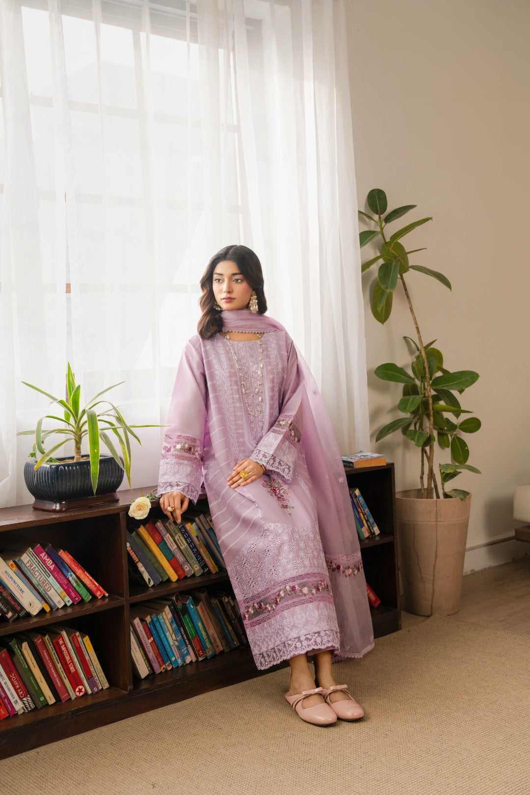 Timeless and sophisticated, this dress features same-on-same embroidery for depth and elegance. This ensemble is crafted with precision from finest of fabrics. contrast embroidered organza patches with intricate laces details on the sleeves & shirt border add an extra touch of sophistication. it’s paired with plain trouser and a stunning embroidered dupatta adorned with laces, this ensemble offers the perfect blend of elegance and luxury.