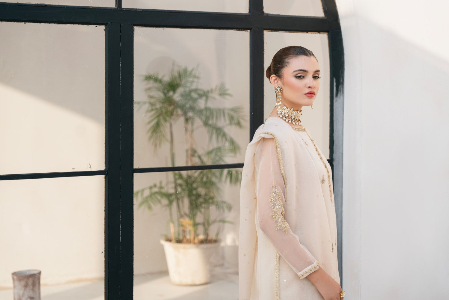 Dupatta: Embroidered organza dupatta adorned with laces.