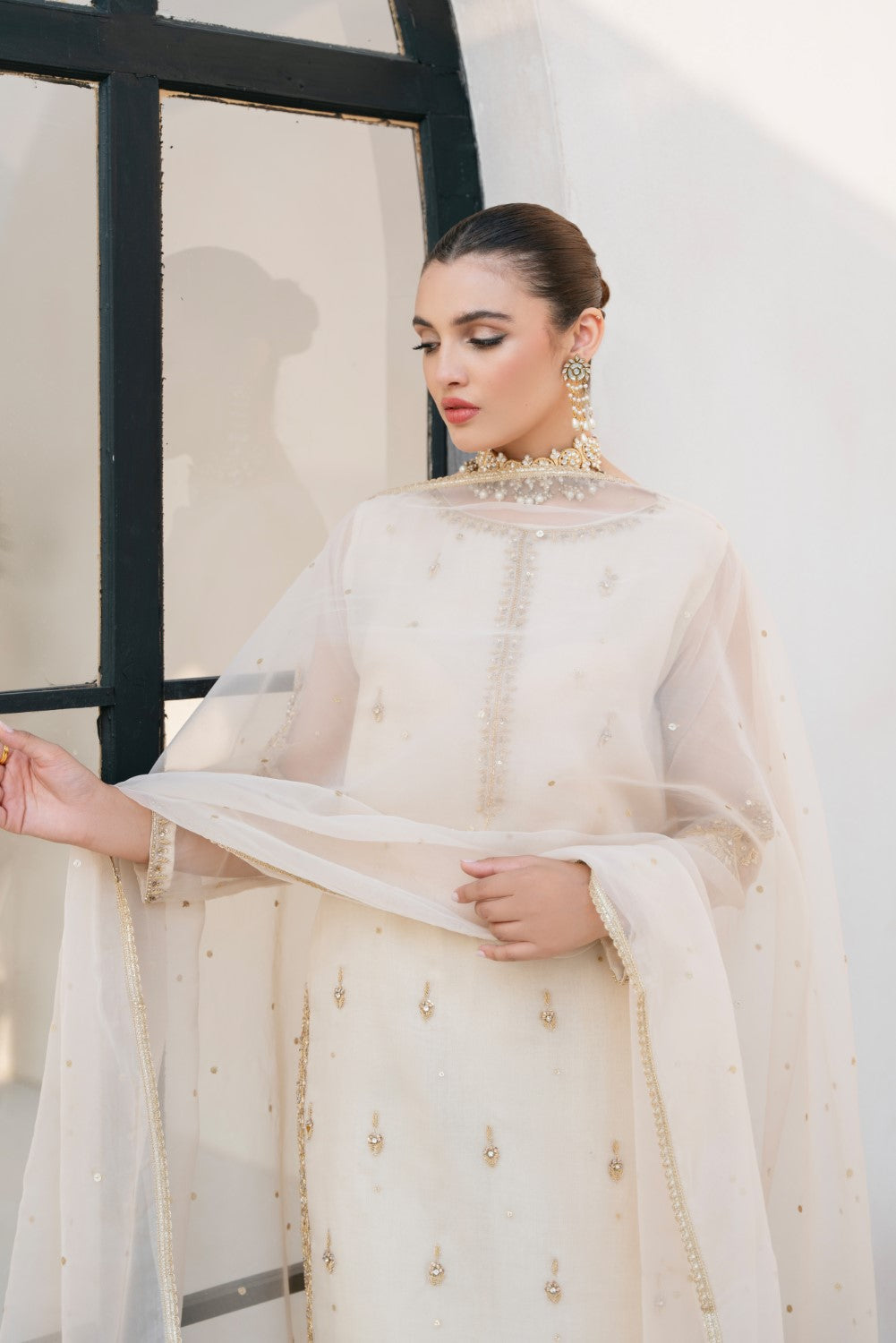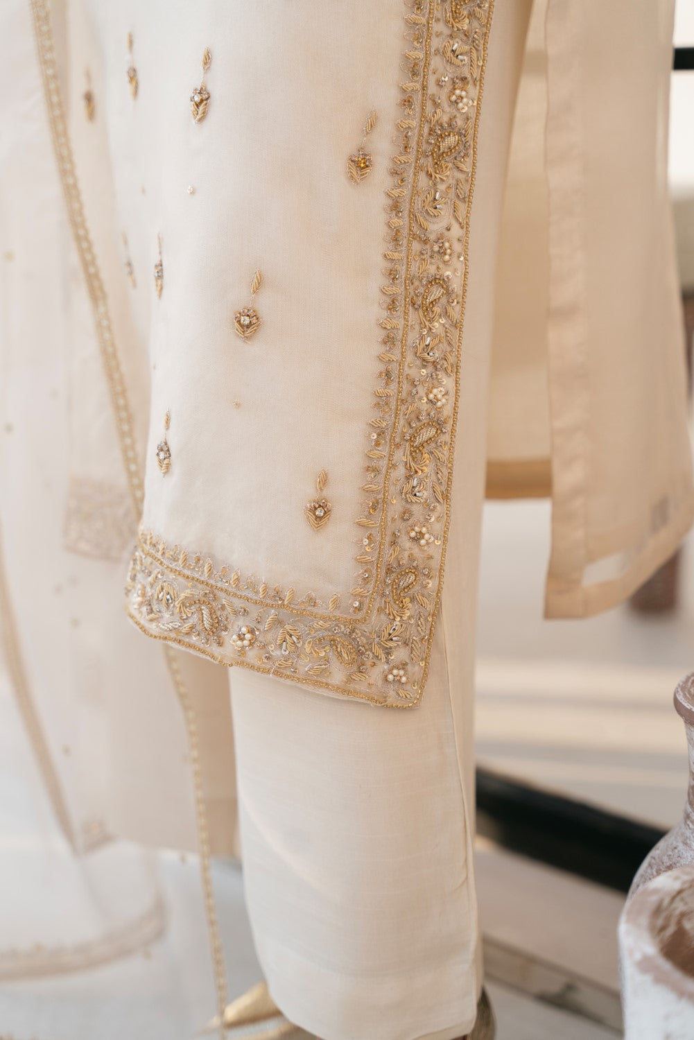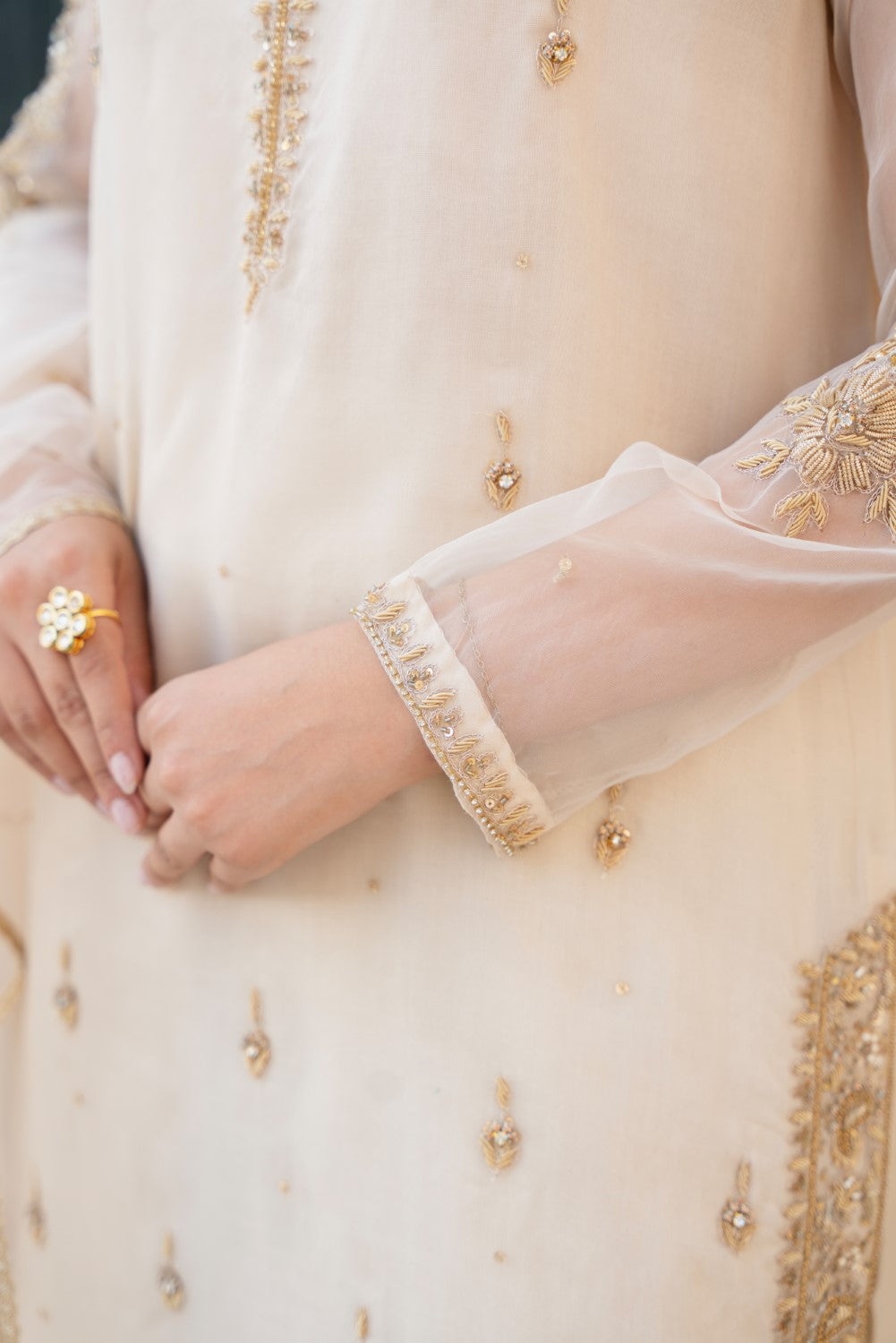 Shirt: embroidery of hand zardozi,dabka and most elegant zari tilla, organza front & sleeves.